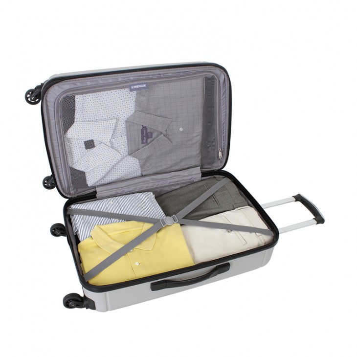 Серебристый чемодан WENGER USTER WGR6297404167 объемом 62 литра – надежный спутник любой командировки или семейного отдыха. Он относится к числу чемоданов-спинеров, известных во всем мире своей практичностью в использовании, маневренностью и легкостью передвижения. Четыре пластиковых колеса и алюминиевая ручка упрощают процесс его транспортировки. Боковая и верхняя ручки для переноски имеют эргономичную форму. Внутри чемодана WENGER USTER располагается вместительный отсек для вещей, дополненный стягивающими ремнями. Большой сетчатый карман с застежкой-молнией отлично подходит для хранения мелочей. Размеры чемодана с учетом колес и сложенной телескопической ручки 44 х 26 х 68 см.