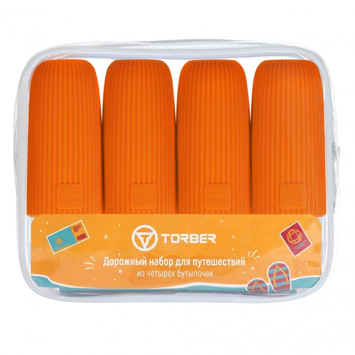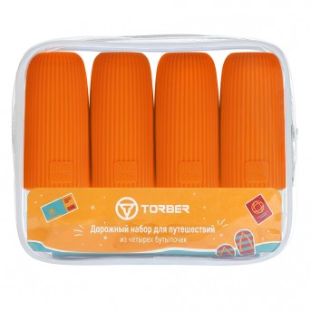 Дорожный набор бутылочек TORBER (4 пр.), силикон, оранжевый