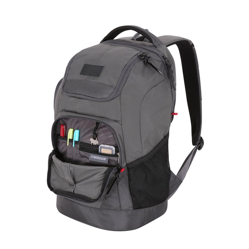 Рюкзак с отделением для ноутбука 15" 5658444410 – это идеальное решение для активного делового человека. Этот рюкзак оборудован специальным отделением для вашего ноутбука с диагональю экрана 15”. Мягкая подкладка надежно защитит ноутбук при переноске. Материалом изготовления является полиэстер 900D – очень прочная и надежная синтетическая ткань. Благодаря боковым карманам из эластичной сетки, вы можете носить с собой бутылки с водой. Спинка и ремни оборудованы системой циркуляции воздуха Airflow. Карман-органайзер и кольцо для ключей позволят вам упорядоченно хранить большое количество мелких вещей. Эргономичная ручка позволяет носить рюкзак не только на спине, но и в руках, когда это необходимо. Рукав для соединения с телескопической ручкой чемодана сделает данную модель очень удобной при путешествиях на дальние расстояния. Рюкзак выполнен в сером цвете, что делает его универсальным и стильным. Объём 28 л позволяет вместить всё необходимое. Функциональная организация: Отделение для ноутбука с мягкими стенками Отделение с мягкими стенками подходит для большинства ноутбуков с диагональю экрана до 15'' Карман для планшетного компьютера с мягкими стенками Карман с мягкими стенками обеспечивает безопасную и удобную переноску планшетного компьютера Система циркуляции воздуха AirFlow Спинка рюкзака с системой циркуляции воздуха имеет специальную рельефную поверхность, обеспечивает удобное прилегание к спине и вентиляцию Карман-органайзер для мелких предметов Карман-органайзер включает в себя ключницу и многочисленные кармашки для ручек, мобильного телефона, документов и карты памяти Рукав для крепления к чемодану Специальный рукав позволяет зафиксировать сумку на телескопической ручке чемодана для удобного перемещения нескольких предметов багажа Плечевые ремни Эргономичные плечевые ремни анатомической формы, оснащенные пропускающей воздух набивной подкладкой, обеспечивают максимальный комфорт при ношении рюкзака Карманы для бутылок / зонта Карманы из эластичной сетки подходят для хранения бутылок с водой и зонта Полиэстер 900D / рипстоп 31x19x48 см, 28 л